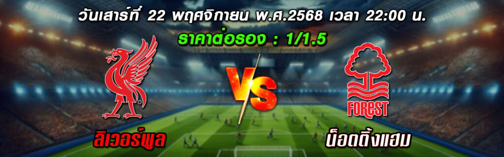 ลิเวอร์พูล ต่อ 1/1.5 ยังเป็นราคาเล่นได้ เพราะในบ้านมักยิงเกินแต้มต่อเมื่อเจอทีมเล็ก และฟอเรสต์มีปัญหาเกมรับนอกบ้านอย่างชัดเจน