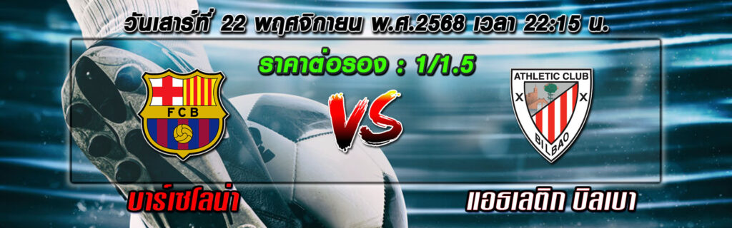 ราคาต่อ บาร์เซโลนา 1/1.5 เล่นได้ เพราะเมื่อเจอบิลเบาในบ้านมักชนะด้วยสกอร์ขาด