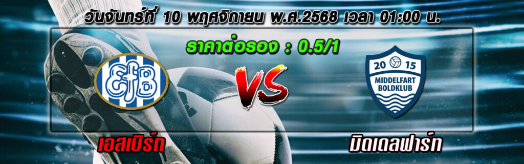 ศึกฟุตบอลเดนมาร์ก ดิวิชั่น 1 เกมนี้เป็นการพบกันระหว่าง เอสเบิร์ก ทีมเจ้าบ้านที่ผลงานค่อนข้างแข็งแกร่ง โดยเฉพาะในบ้านที่ยังแพ้ยากและยิงได้เกือบทุกนัด ส่วนทีมเยือน มิดเดลฟาร์ท ฟอร์มเริ่มแผ่วหลังจากช่วงต้นฤดูกาลที่ทำได้ดี ตอนนี้เกมเยือนหลุดฟอร์มอย่างเห็นได้ชัดและแนวรับเสียประตูเกือบทุกเกม
