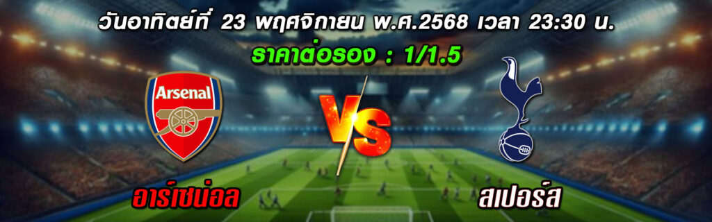 อาร์เซน่อลในบ้านทรงบอลดีกว่าและมีความแน่นอนมากกว่า สเปอร์สเกมเยือนมักเสียประตูค่อนข้างเยอะ หากดูจากราคาต่อ 1/1.5 แม้จะค่อนข้างสูง แต่รูปเกมมีโอกาสที่เจ้าถิ่นจะบุกหนักตั้งแต่ต้นเกมและสร้างโอกาสหลายครั้ง