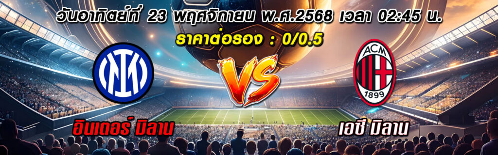 ราคาต่อ 0/0.5 เข้าทางอินเตอร์มากกว่า เพราะสถิติดาร์บี้ช่วงหลัง อินเตอร์คุมเกมได้ดีกว่าและเก็บผลการแข่งขันเหนือมิลานบ่อยครั้ง