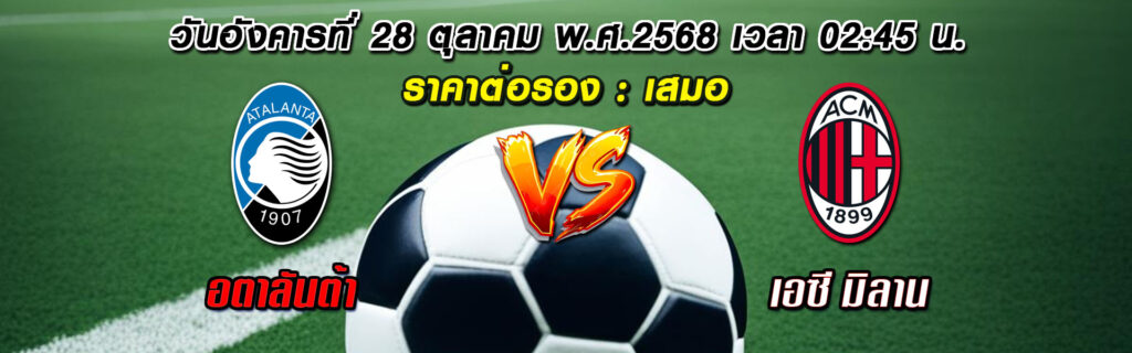 เกมสูสี แต่อตาลันต้าที่เล่นในบ้านมีทีเด็ดจากลูกตั้งเตะและเพรสซิ่งเร็ว น่าจะเฉือนมิลานไปแบบสนุก
