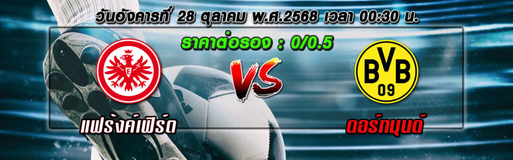 - ราคาต่อรอง (0/0.5) : ดอร์ทมุนด์เหนือกว่านิด ๆ แต่เกมเยือนแบบนี้โอกาสเสมอสูง เจ้าถิ่นอย่างแฟร้งค์เฟิร์ตเล่นในบ้านได้ดี