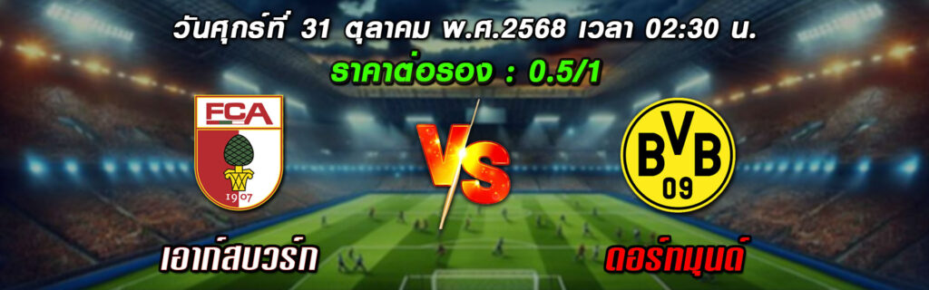 ราคานี้เปิดมาที่ “ดอร์ทมุนด์ ต่อ 0.5/1” ถือว่ามีความเสี่ยง เพราะฟอร์มเกมเยือนของพวกเขาไม่คงเส้นคงวา ในขณะที่ เอาก์สบวร์ก เล่นในบ้านได้ดีและมักสร้างปัญหาให้ทีมใหญ่ แนะนำ