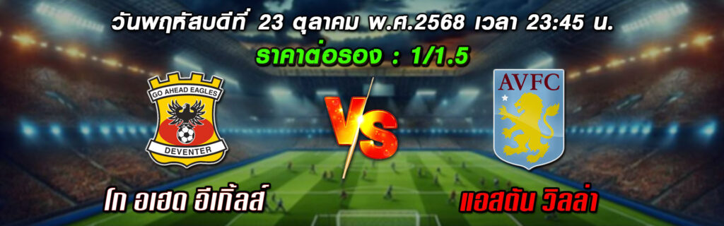 โก อเฮด อีเกิ้ลส์ ทีมจากเนเธอร์แลนด์ เปิดบ้านรับการมาเยือนของ แอสตัน วิลล่า ทีมจากอังกฤษในศึกยูโรป้าคอนเฟอเรนซ์ เกมนี้ถือเป็นการเจอกันที่ต่างชั้นพอสมควร วิลล่ากำลังอยู่ในฟอร์มร้อนแรงในลีก ชนะต่อเนื่อง และเกมรุกคมมากโดยเฉพาะโอลลี วัตกินส์ และดิอาบี้ ส่วนโก อเฮดฯ แม้เล่นในบ้านได้ดี แต่แนวรับยังมีจุดอ่อน โดยเฉพาะเมื่อเจอกับทีมที่เพรสซิ่งเร็วและจบสกอร์เฉียบขาด