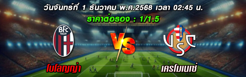 โบโลญญ่าฤดูกาลนี้ผลงานในบ้านแข็งแกร่ง เกมรุกหลากหลาย ครองบอลดี และมีความเข้มข้นในแดนกลาง ส่วนเครโมเนเซ่เป็นทีมที่เน้นตั้งรับและสวนกลับ แต่จุดอ่อนคือเกมรับที่เสียประตูง่ายเมื่อเจอทีมบุกหนัก โดยเฉพาะเกมเยือนที่ผลลัพธ์ไม่ค่อยดีนัก โอกาสรอดออกไปแบบไม่เสียประตูถือว่ายาก